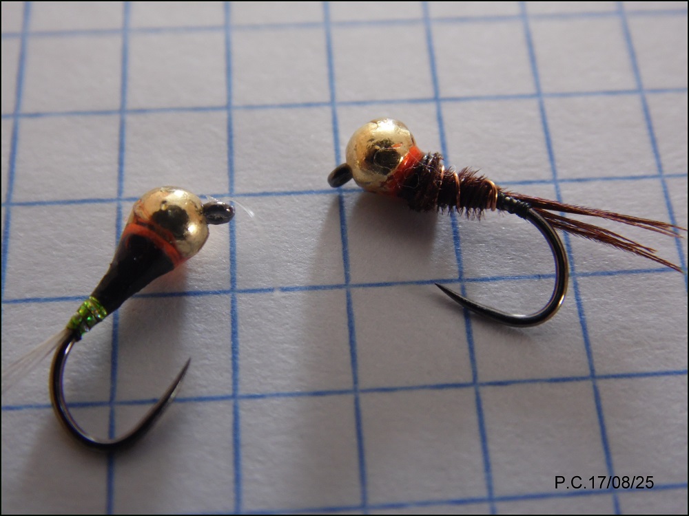 Perdigone à gauche son profil de par sa construction permet d’atteindre rapidement les couches inférieures de l’eau et à droite et pheasant tail casquée spot orange.